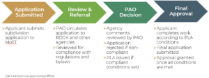 While the RDCK sets its own minimum standards for subdivisions, the actual approval of subdivisions in the RDCK’s rural areas is the responsibility of the Provincial Approving Officer at the Ministry of Transportation and Transit.