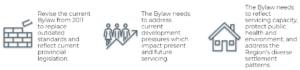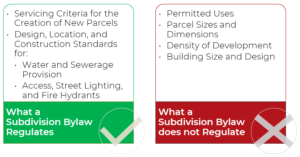 - Ensure that subdivision regulations align with current provincial legislation, best practices and community needs